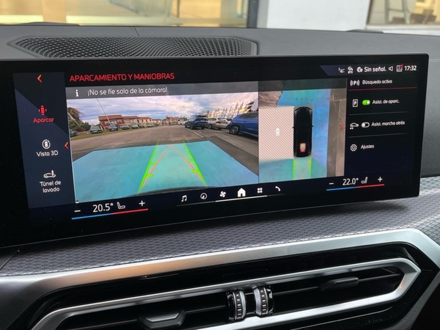 - Sensores de aparcamiento delanteros con sensor, sensores de aparcamiento traseros con sensor y cámara, sensores de aparcamiento en los lados con sensor